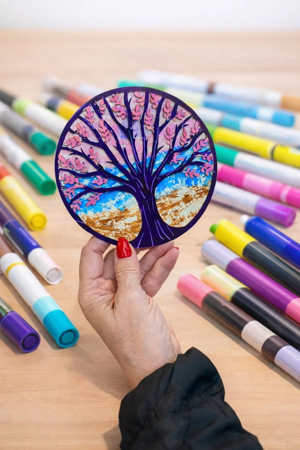 Decorate a wooden tree ornament with vibrant paint pens to create a meaningful keepsake celebrating growth and renewal. All ages welcome.