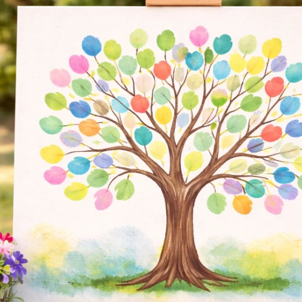 Add your thumbprint to a collaborative tree painting — each print becomes a leaf.